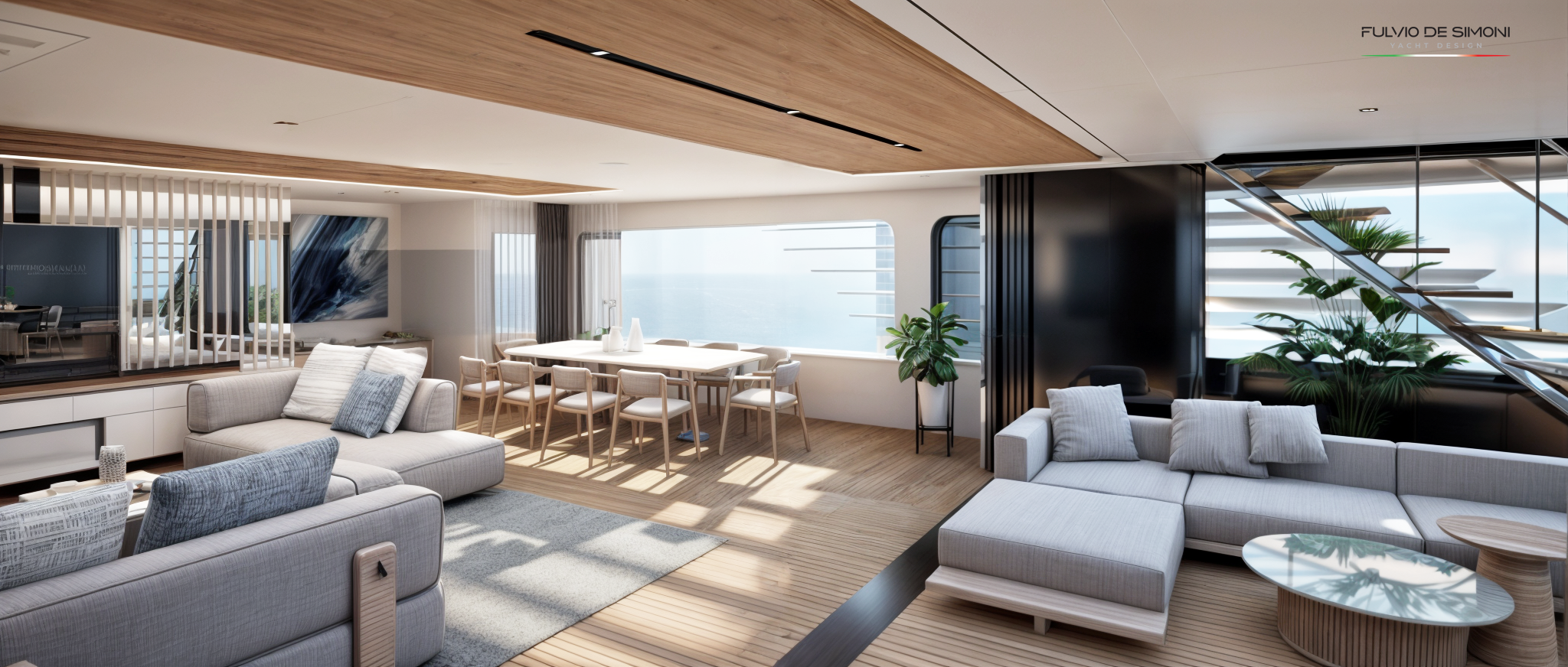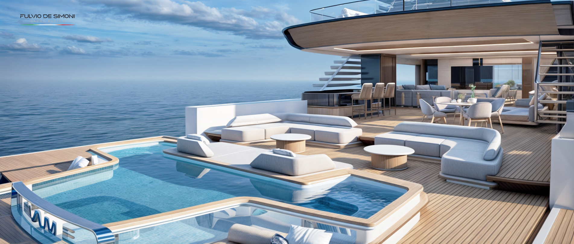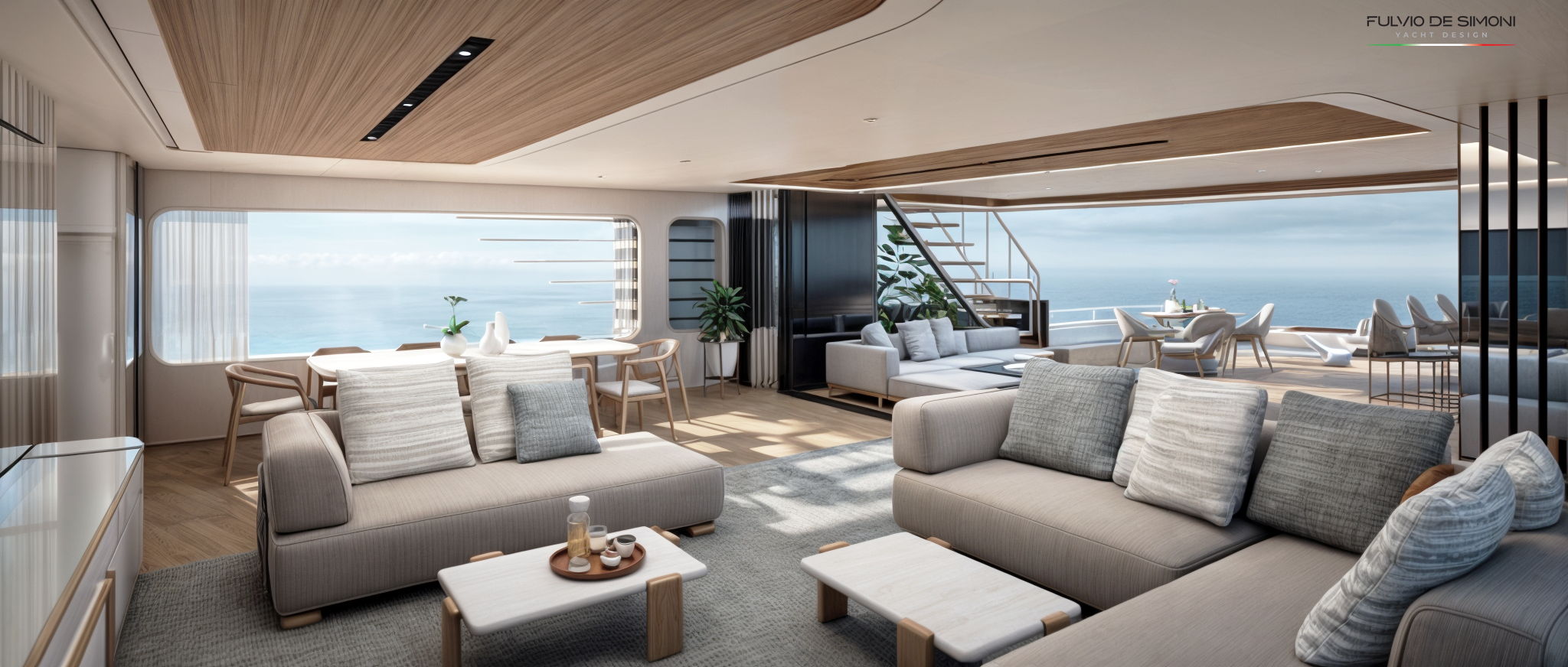 — Главная палуба — бесшовная стыковка салона и кормового лаунжа, без жёсткой границы «дом—улица», с полностью открываемой боковой и кормовой частью.