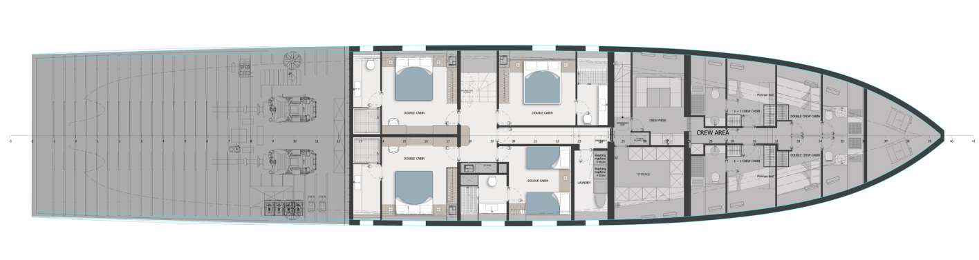— Предусмотрены варианты общих планировок (GA) на уровне sun/upper/main/lower палуб.