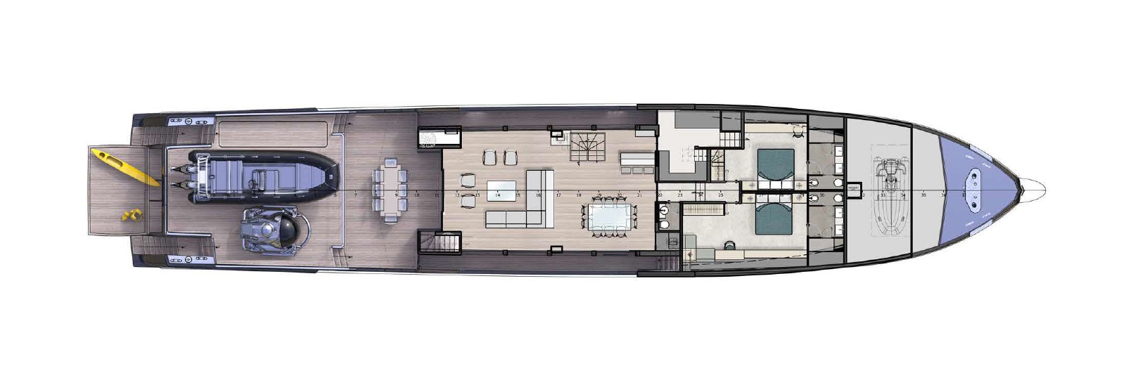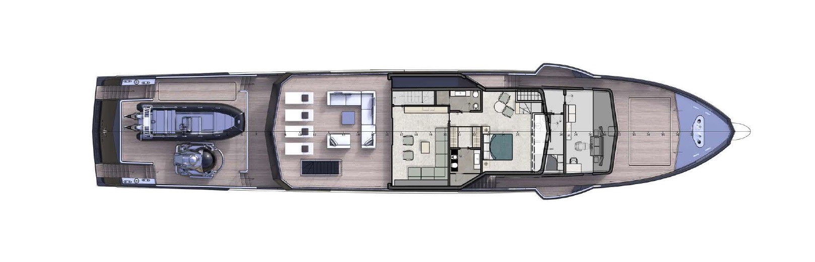 UP-40 EXPLORER SPORT оснащен просторной кормовой «флэш-палубой», которая отражает его спортивный и минималистский стиль.