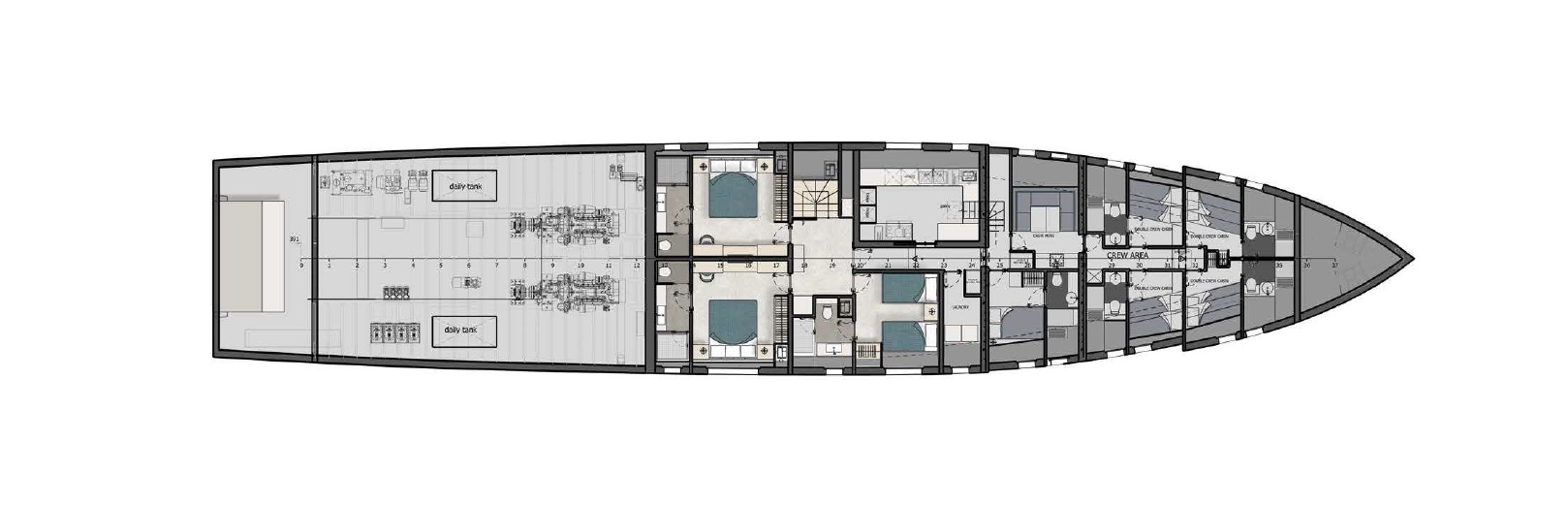Каждая деталь была тщательно продумана, чтобы обеспечить гостям комфортное пребывание, независимо от продолжительности визита. В то же время, мореходным качествам и безопасности судна был отдан приоритет.